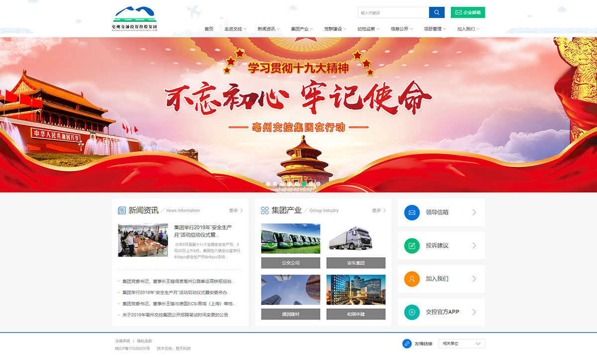 2017年8月按照市政府安排,以亳州市交通建設投資有限責任公司為載體,通過對亳州市公共交通有限責任公司、安徽省安車交通運輸有限公司、亳州鐵路投資有限責任公司等交通類資產及股權進行整合,組建亳州交通投資控股集團(簡稱:亳州交控集團),公司注冊資本金20億元人民幣,主要從事交通基礎設施建設與經營(公路、橋梁建設、養(yǎng)護、投資、開發(fā)、經營);城市公共客運,汽車租賃;道路運輸、城鄉(xiāng)客運;汽車銷售、租賃、檢測及維修;汽車駕駛考試服務;房地產開發(fā);交通基礎設施投資及相關部門授權的其他領域的投資。公司總資產98億元;下屬全資、控股、參股公司31家。目前,公司員工共1331人,其中集團本部員工72人,子公司員工1259人。